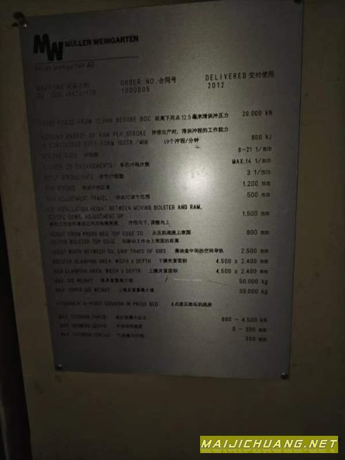 精品上市,汽车冲压线知名国际品牌米勒万家顿1000。SPM 8-21机器人上料,全封闭,全自动化机械手行程1200mm,装模高度1500mm双侧移工作台,尺寸4500*2400_ 信息编号:S564216 |